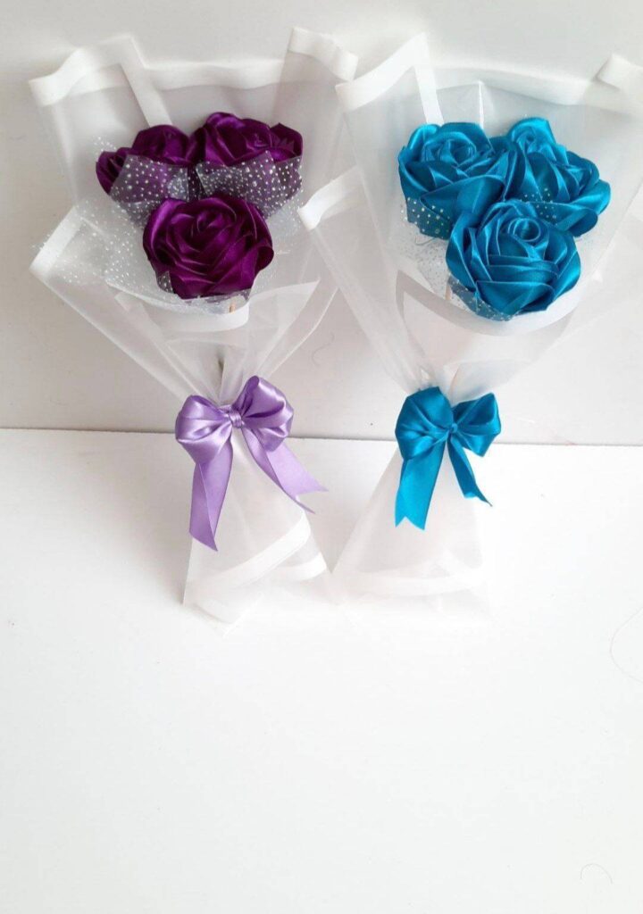 دسته گل روبانی باقیمت مناسب بارنگ دلخواه به فروش میرسه